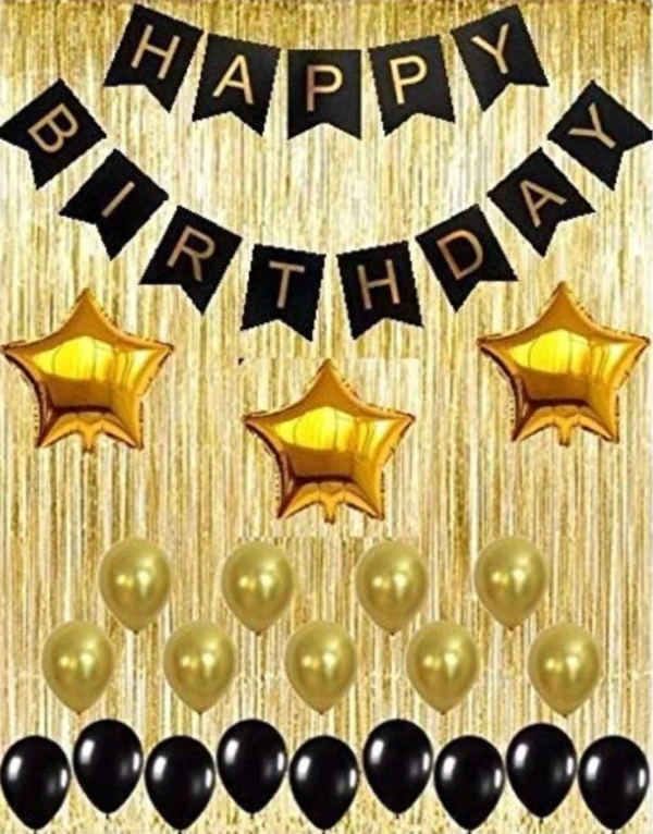 Your Background for birthday celebration looks fantastic with this combo set of HBD banner, Star Foil, Metallic balloons and Foil curtain.